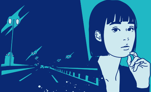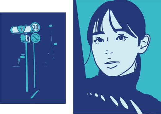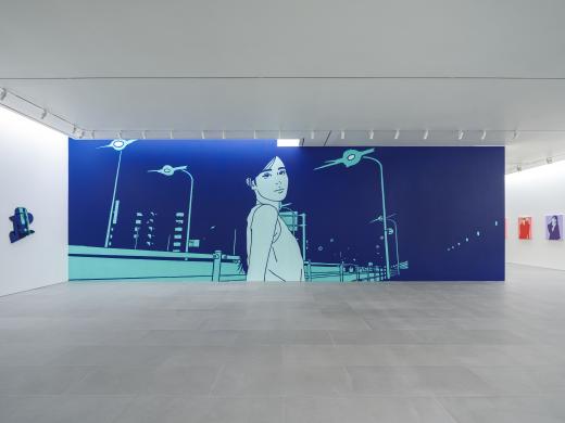 ROUTE 3는 일본 후쿠오카를 남북으로 관통하는 국도 3호선을 가리킨다. KYNE의 닉네임 ‘route3boy’가 이 길에서 비롯되었듯, 이번 전시의 제목은 지명 자체라기보다 도시를 읽는 감각을 호출한다. 작가가 오래 주목해 온 것은 공공 공간에서 우연히 생성되는 장면들이다. 낙서와 그래피티의 흔적, 항만 창고와 고가도로가 만들어내는 공기, 사람의 스케일을 넘어서는 구조물이 드리우는 그늘. 이러한 장면들은 제한된 색과 굵은 윤곽, 큰 면으로 번역되며 KYNE의 화면 언어를 이룬다.