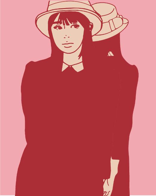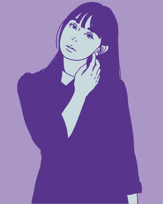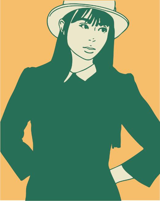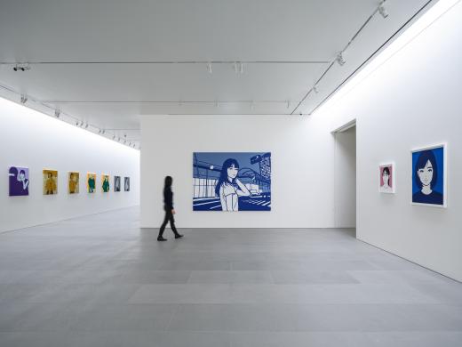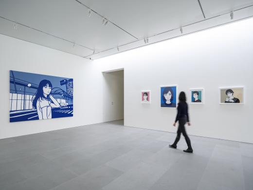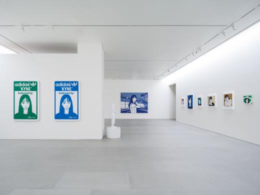 KYNE를 상징해 온 정면의 여성 얼굴은 감정을 과시하기보다 태도를 유지하고, 관람자와의 거리를 단단히 남긴다. 1980년대 아이돌 레코드 재킷의 프레이밍과 색면, 일본화(日本画)의 평면성과 공정, 그리고 그래피티가 요구하는 즉각적인 가시성이 한 화면 안에서 결속하며 이 인물상을 형성해 왔다. 그 결과 이 얼굴은 초상이라기보다, 이미지가 빠르게 소비되는 도시에서 ‘아이콘’이 성립하는 조건을 회화로 구현한 형태에 가깝다.
