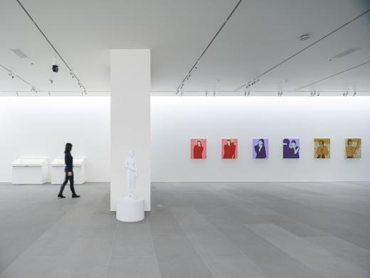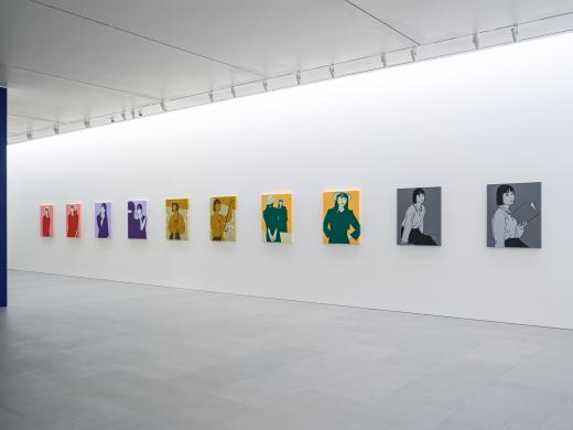 그러나 《ROUTE 3》에서 그 아이콘은 더 이상 홀로 서 있지 않다. 전시의 전환점은 두 개의 캔버스가 한 쌍을 이루는 작품들에서 가장 선명하게 드러난다. 한 캔버스에는 인물이, 다른 캔버스에는 표지판과 신호등, 교량과 고가도로 같은 ‘길’의 풍경이 놓인다. 풍경은 사실적 재현을 과시하기보다, 재료와 정보가 선택되고 배치되는 ‘편집’의 방식으로 구성된다. 굵은 선과 큰 면으로 정리되고 제한된 색으로 압축되며, 불필요한 정보는 과감히 덜어 낸다. 그 결과 풍경은 배경으로 물러서지 않고 독립된 화면으로 선다. 인물 역시 그 옆에서 동등한 존재감으로 놓인다. 관람자는 ‘얼굴’과 ‘길’을 동시에 보게 되고, 이 병치가 전시의 핵심을 이룬다.