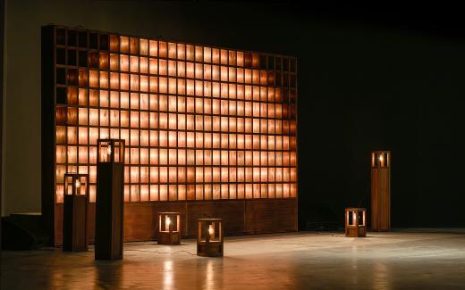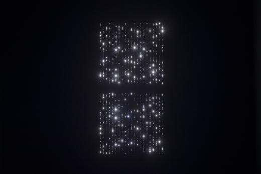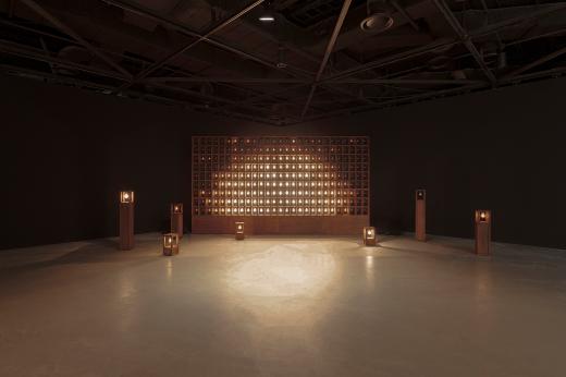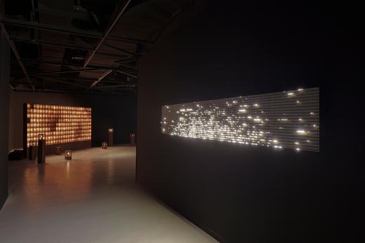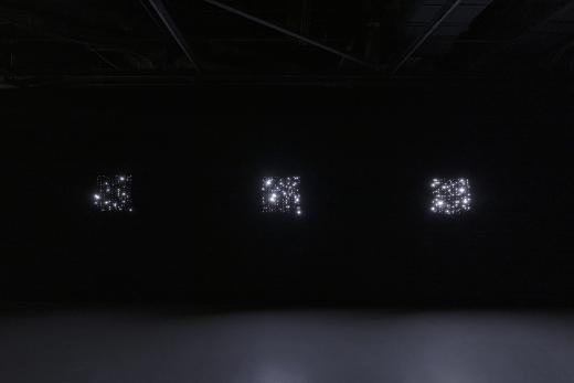 전시의 도입부에서 마주하는 <묘화>는 사일로랩을 세상에 알린 작품 중 하나로, 오늘날 사라져가는 ‘백열전구의 장례식’을 모티브로 탄생했습니다. 곁을 지키던 존재가 사라져가는 아쉬움을 담은 이 작품은, 280여 개의 백열전구가 각기 고유한 빛의 밝기와 속도로 그려내는 유기적인 움직임을 통해 우리에게 잊혀가는 온기와 포근함을 전달합니다.