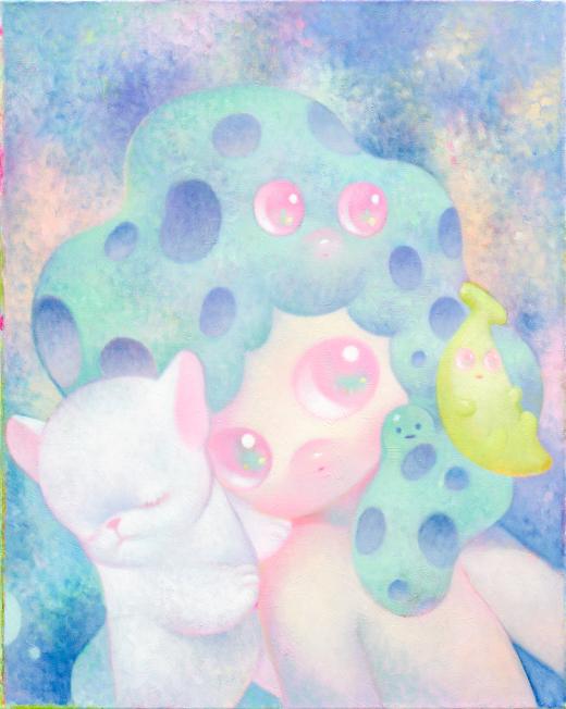 이소연은 꿈과 상상, 현실이 교차하는 지점에 몽환적인 세계를 구축하고, 무성(無性)의 캐릭터 망고와 강아지 초코를 세워둡니다. 그리고, 현실의 중력을 거스르는 자유로운 판타지 속에 타국에서 이방인으로서 겪은 작가 개인의 서사와 고백을 섬세하고 밀도 있게 채워 넣습니다. 디아스포라적 경험에서 야기된 다층적 정체성과 마이너리티의 감각은 작가의 내면세계에서 출발했지만, 작품을 마주하는 관람객 내면의 자아(Inner-self)를 소환하며, 개인의 자전적 서사를 넘어 현대 사회의 보편적인 공감으로 확장됩니다.